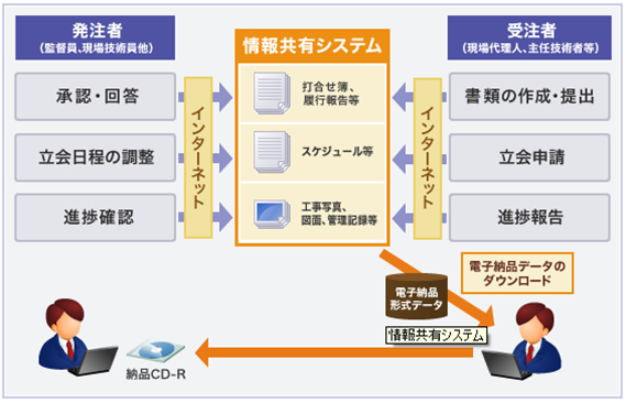 公共工事における受注者と発注者間の工事情報のやりとりを行う情報共有システムのサービス提供を行っています. こちらの入り口からご利用ください.